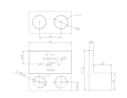 One hole, front entrance,or two copper or aluminum conductors,ody fabricated from high strength aluminum alloy extrusion
